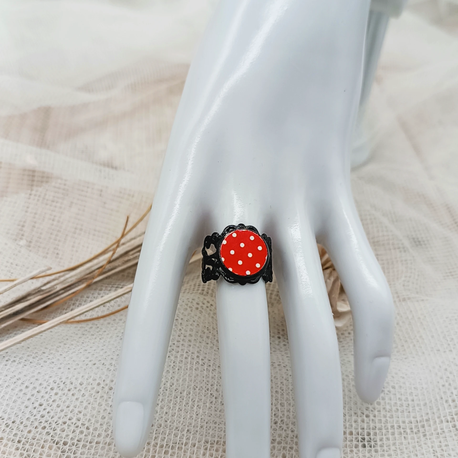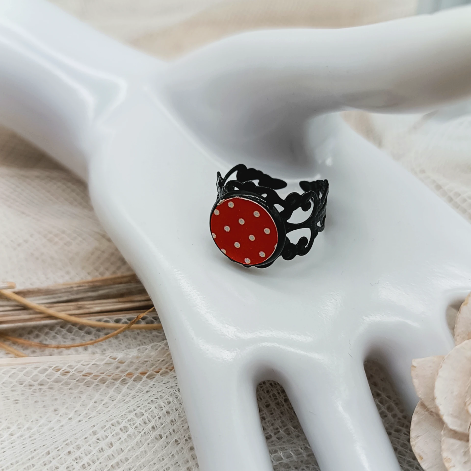 Apportez une touche glamour et vintage à vos looks avec la bague rétro Rouge à Pois.