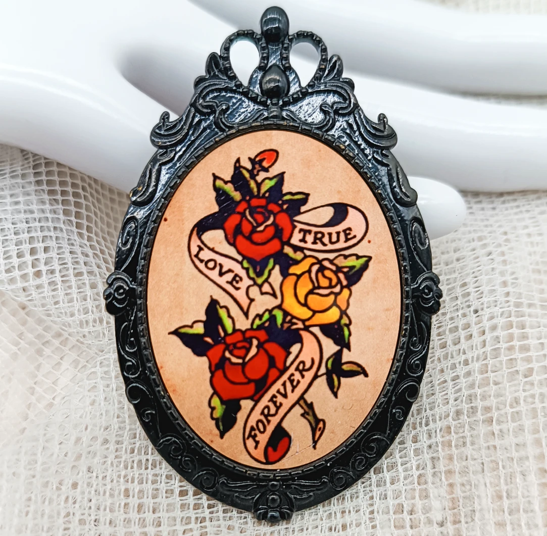 La broche rétro True Love est une véritable déclaration d’amour au style tattoo old school