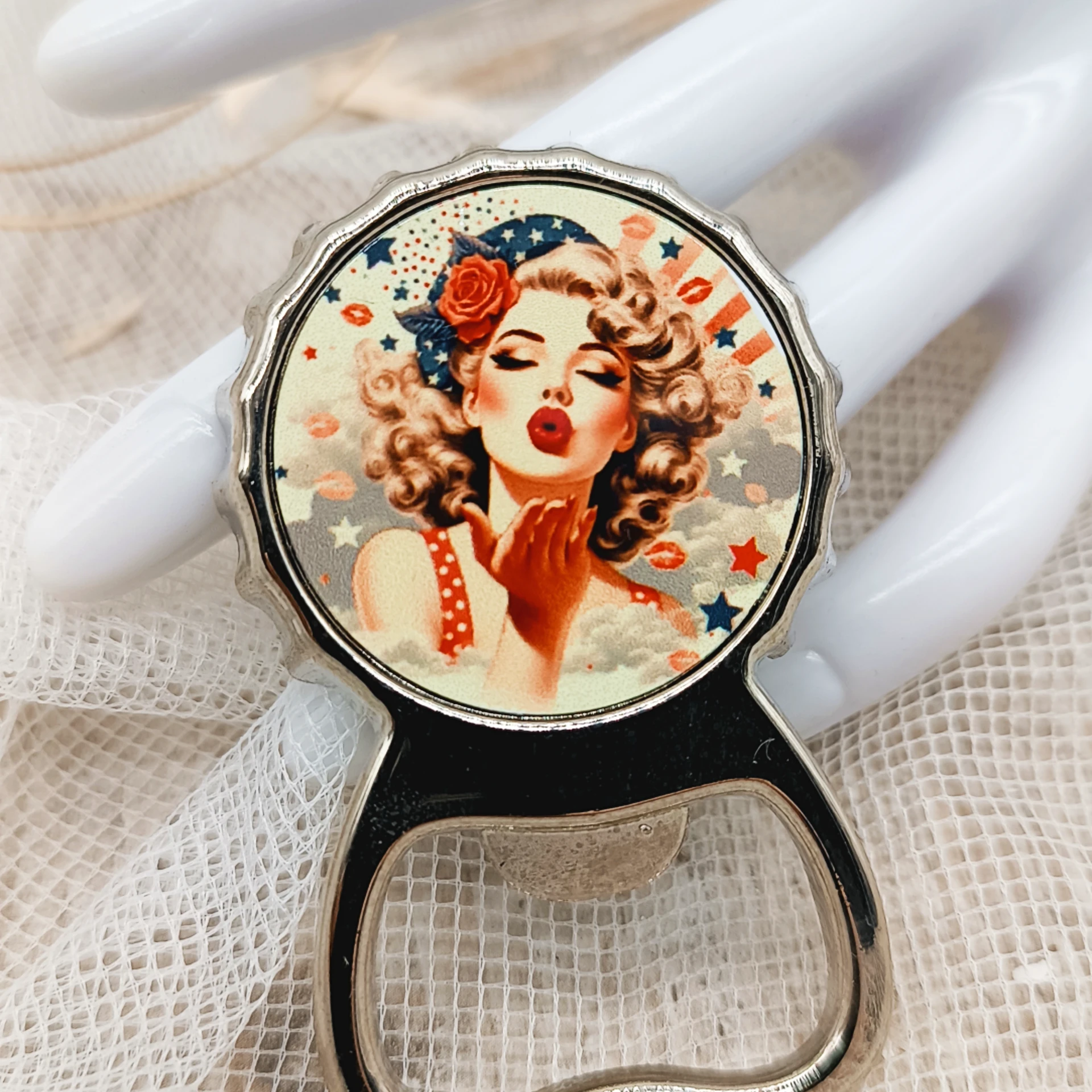 Laisse entrer une touche de glamour et de rétro dans ton quotidien avec le décapsuleur Kiss Me Pin-Up.