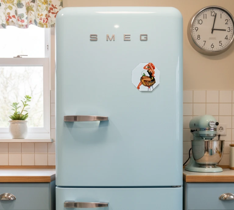Parfait pour un réfrigérateur, un tableau magnétique ou toute surface métallique, ce magnet est idéal pour les fans d’univers pin-up, rockabilly et vintage décalé.