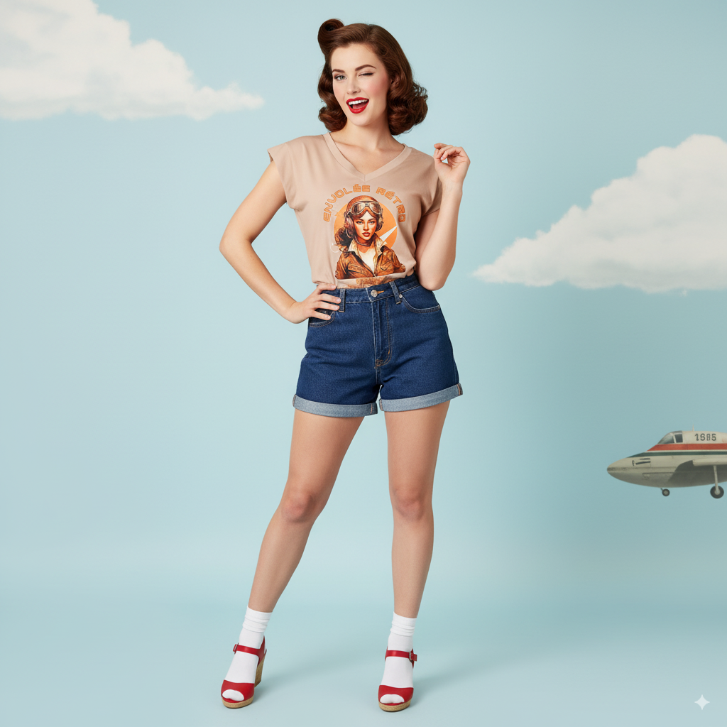 Affirmez votre esprit d’aviatrice et votre amour pour le style rétro avec ce t-shirt unique de M’zelle Amaryllis.