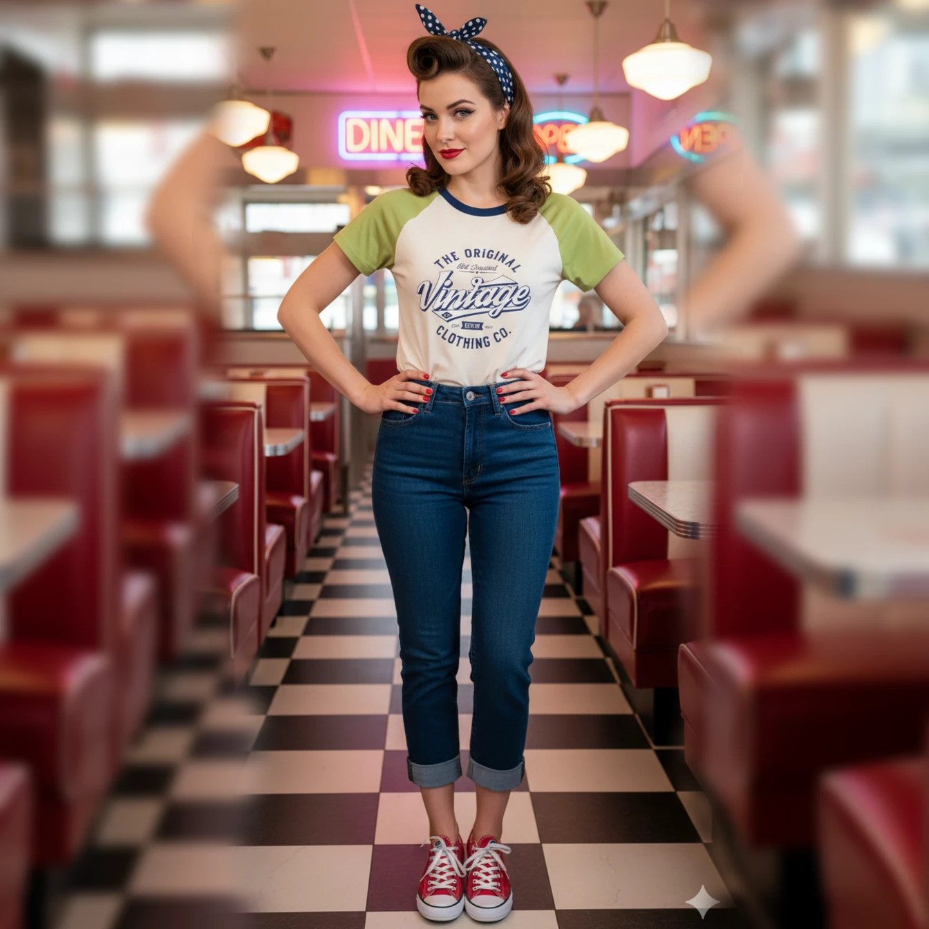 Le t-shirt Sweet Diner Vintage est une véritable invitation à plonger dans l’ambiance chaleureuse et iconique des diners américains des années 50. Inspiré de l’univers pin-up, il allie féminité, confort et style intemporel.