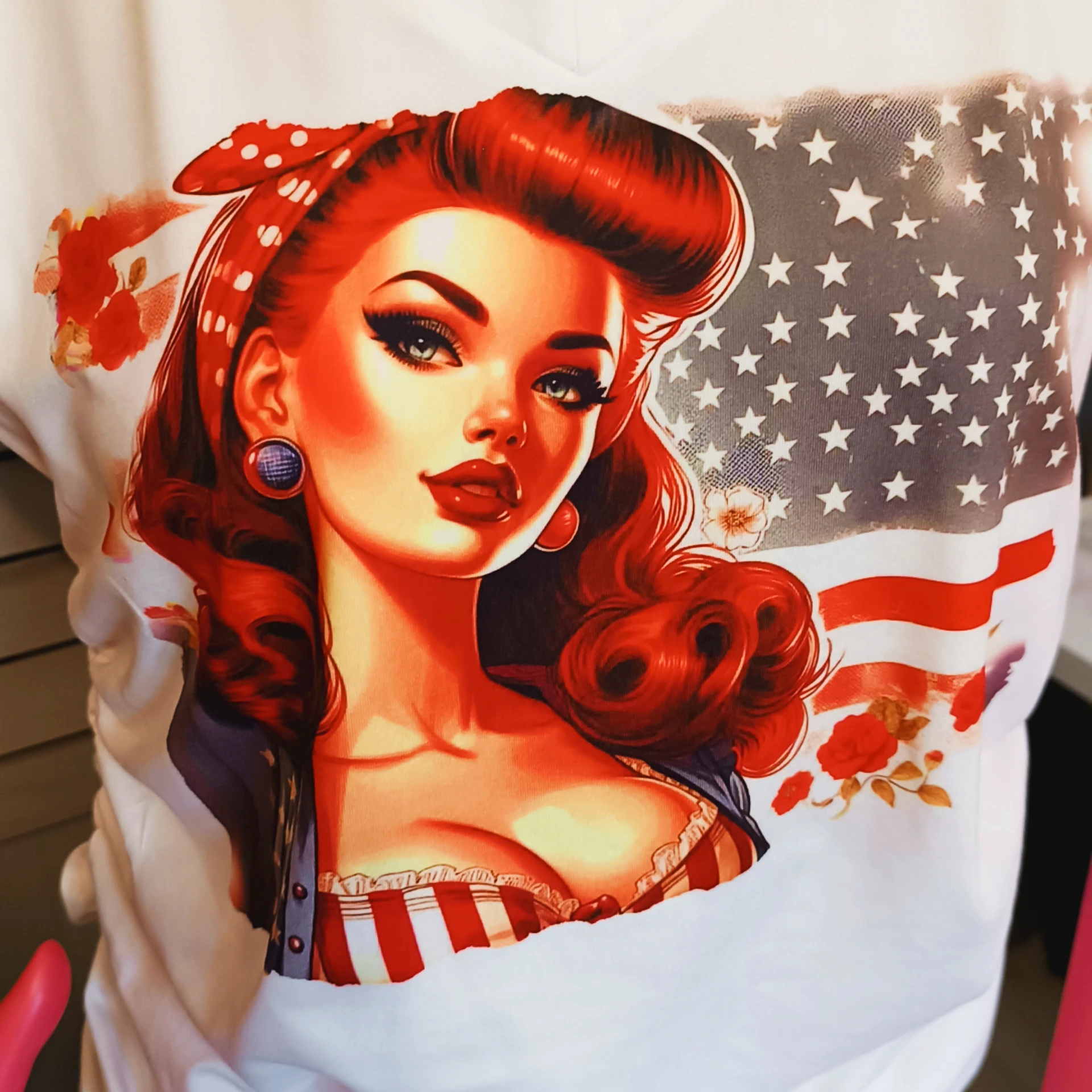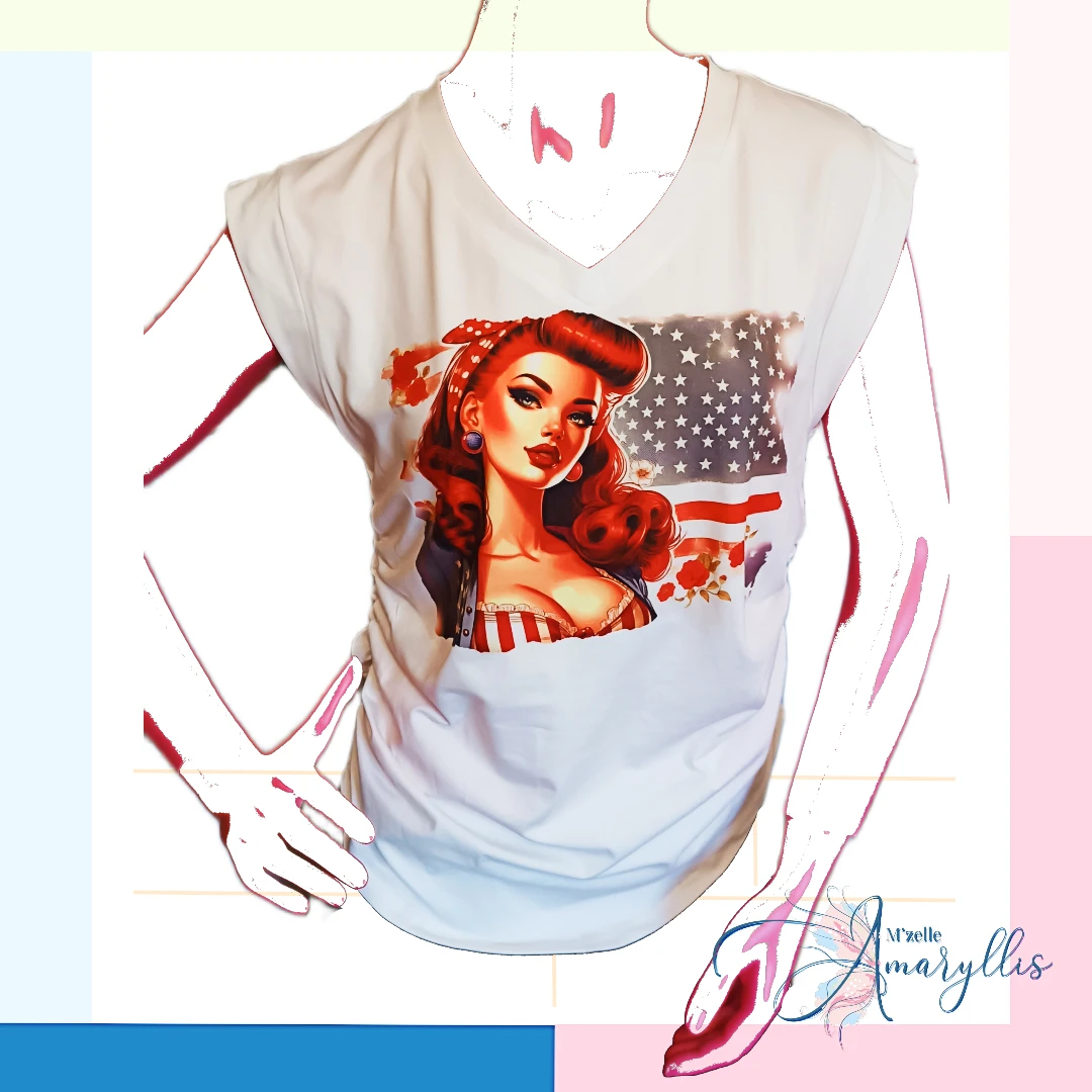 Fais un bond dans le temps avec le t-shirt Sweet Liberty, une pièce emblématique pour toutes les amoureuses de mode rétro et pin-up.