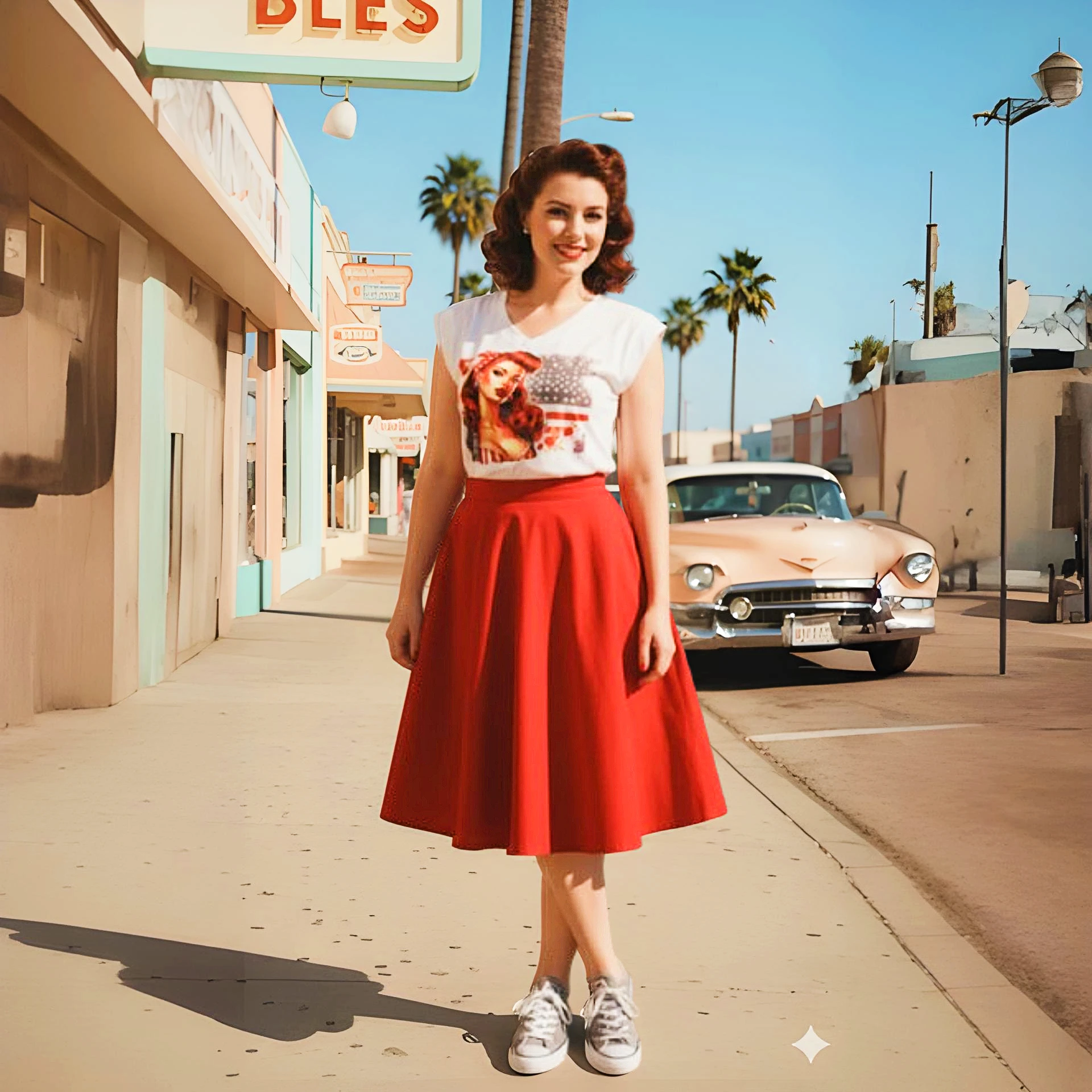 Son illustration vintage rend hommage à l’esprit libre et audacieux des années 50, dans un style à la fois féminin et affirmé.