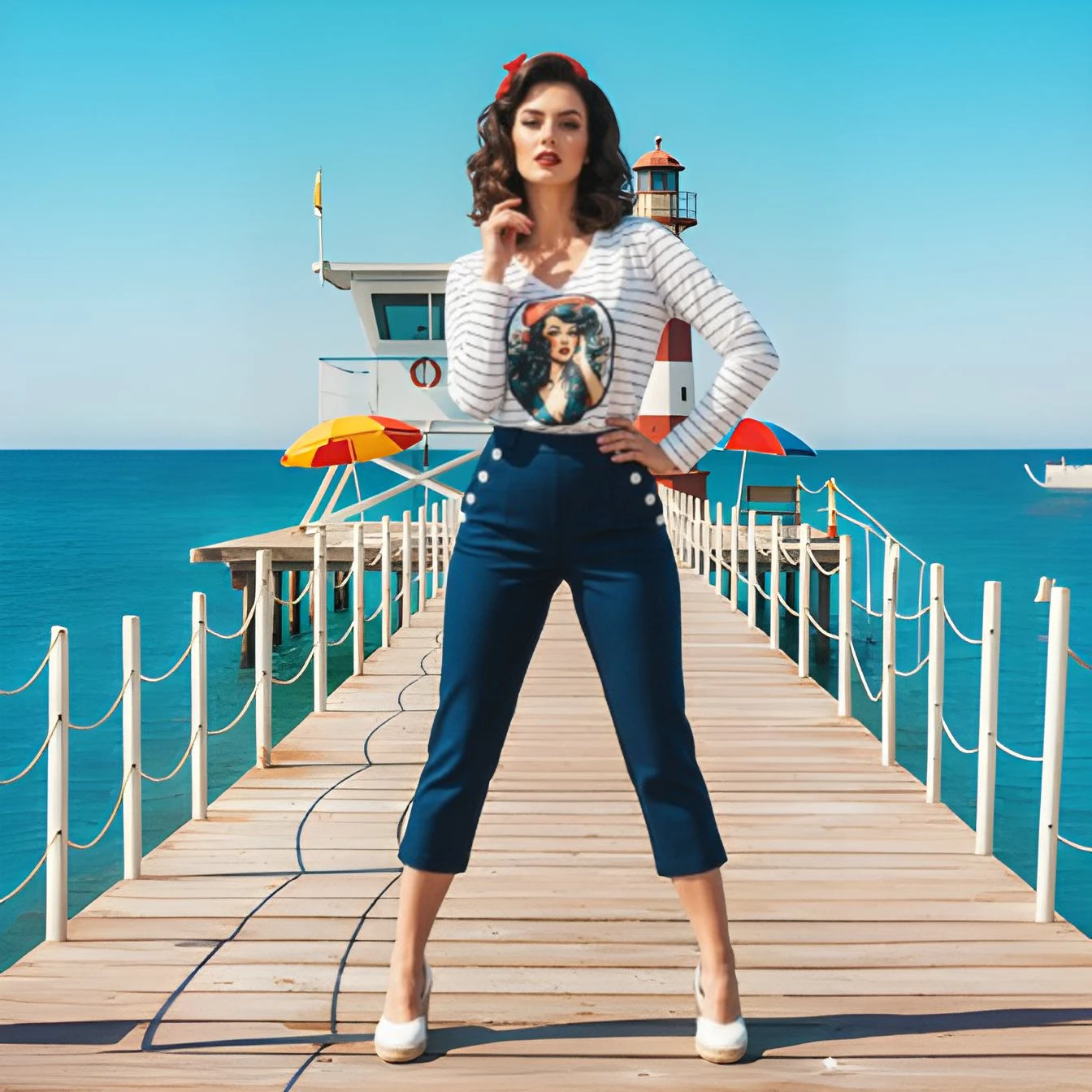 Imaginez une balade sur le port, où l’air marin caresse la peau et le bruit des vagues rythme vos pas. Ce t-shirt vous plonge dans l’univers de celles qui, autrefois, attendaient le retour des navires avec une élégance sans pareil, tout en rêvant d’ailleurs. La pin-up, inspirée par cet esprit aventurier, nous rappelle que la mode est une invitation au voyage, à la liberté, et à l’affirmation de soi.